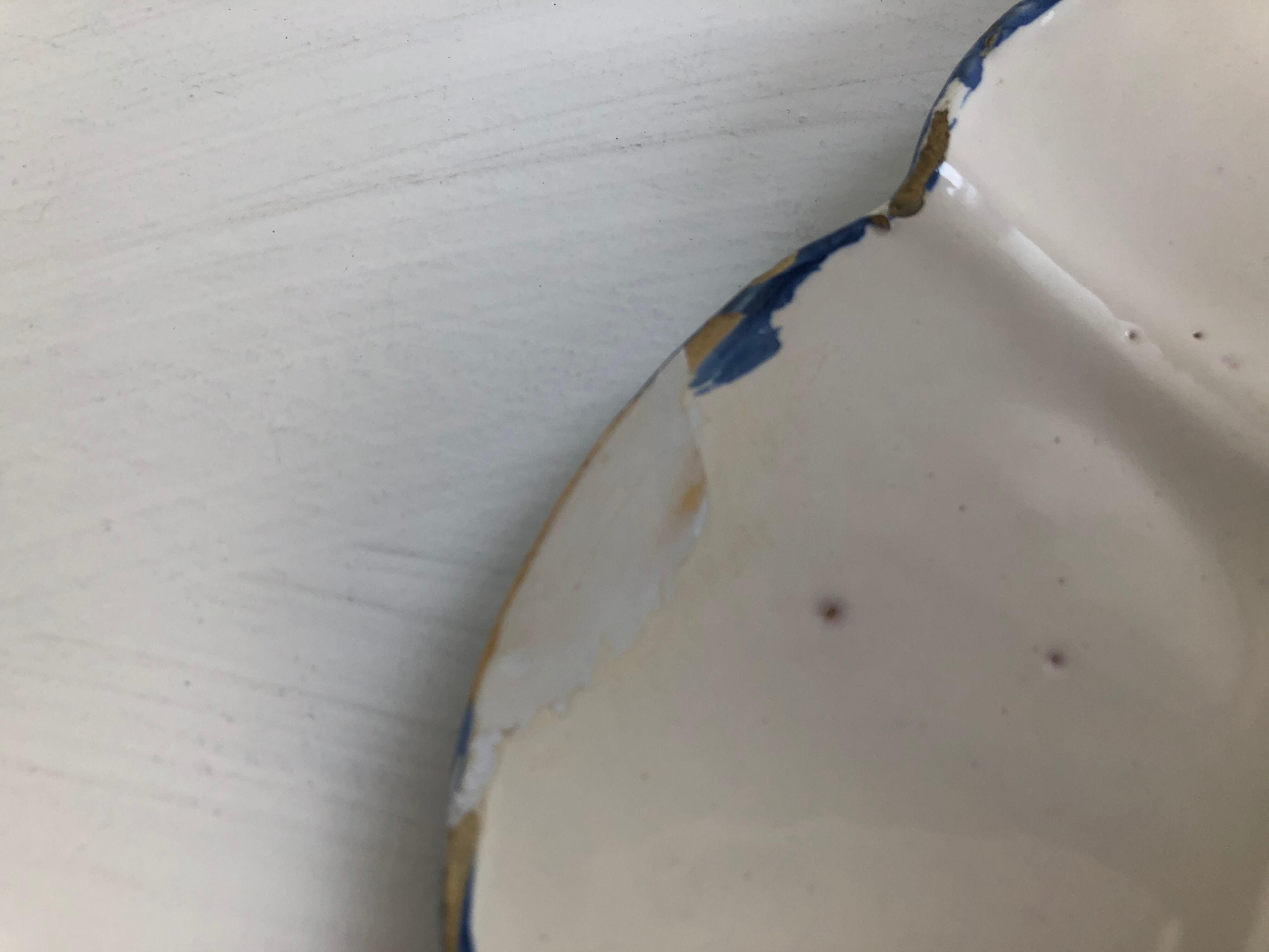 ○端に欠け少し、裏面の端に3-4cmの補修二点。あまり多くは使用されておらず良い状態です。