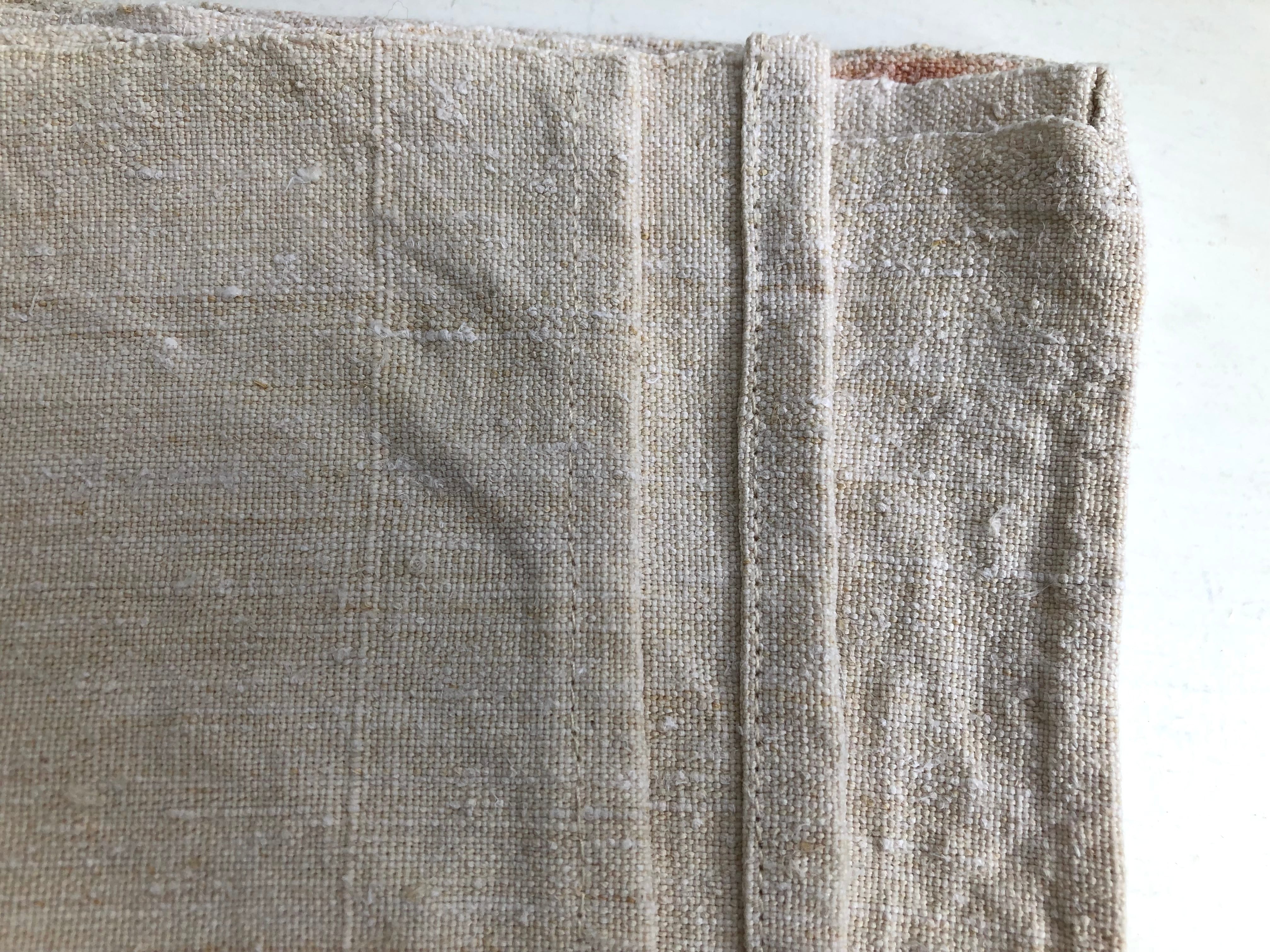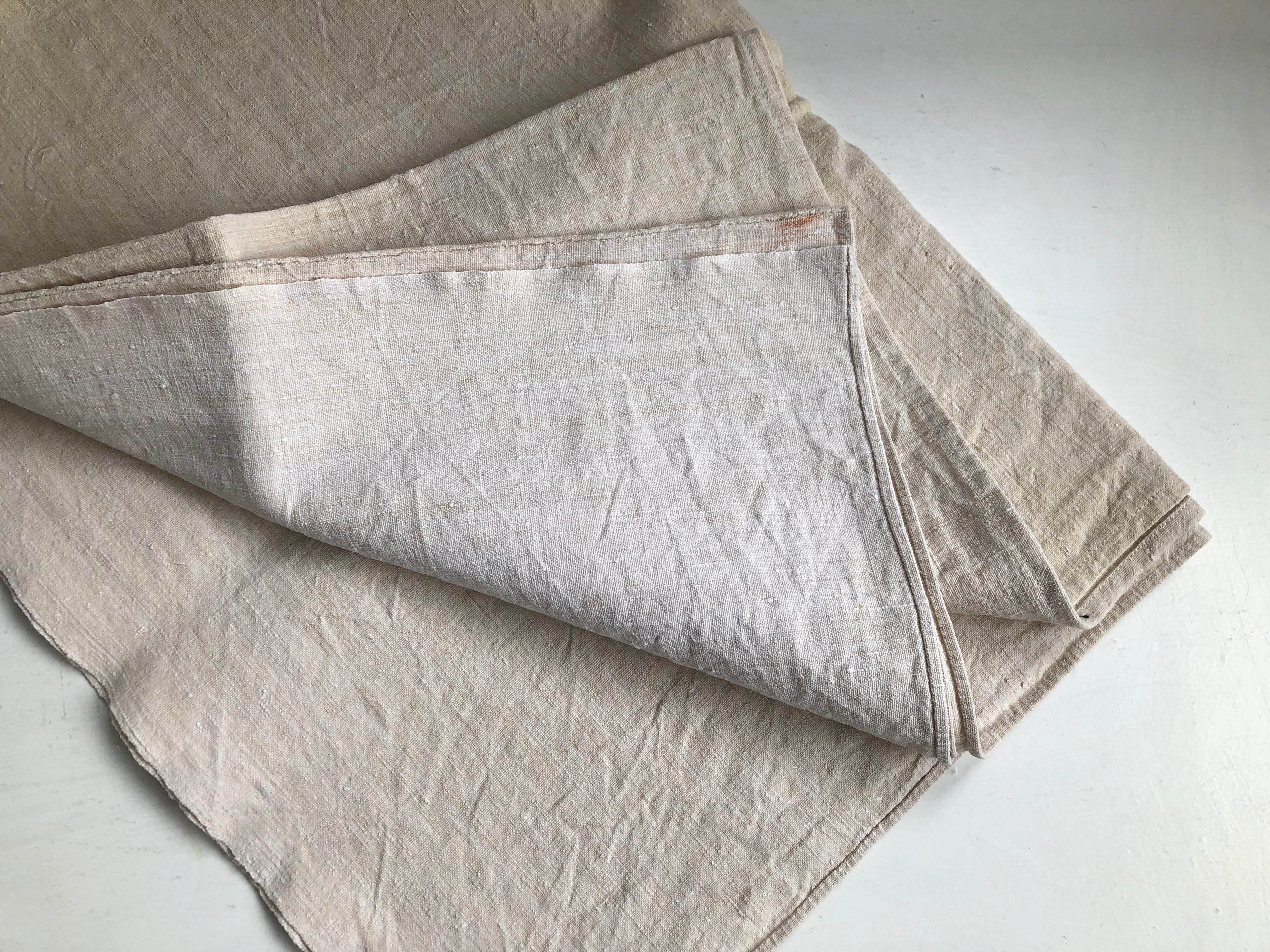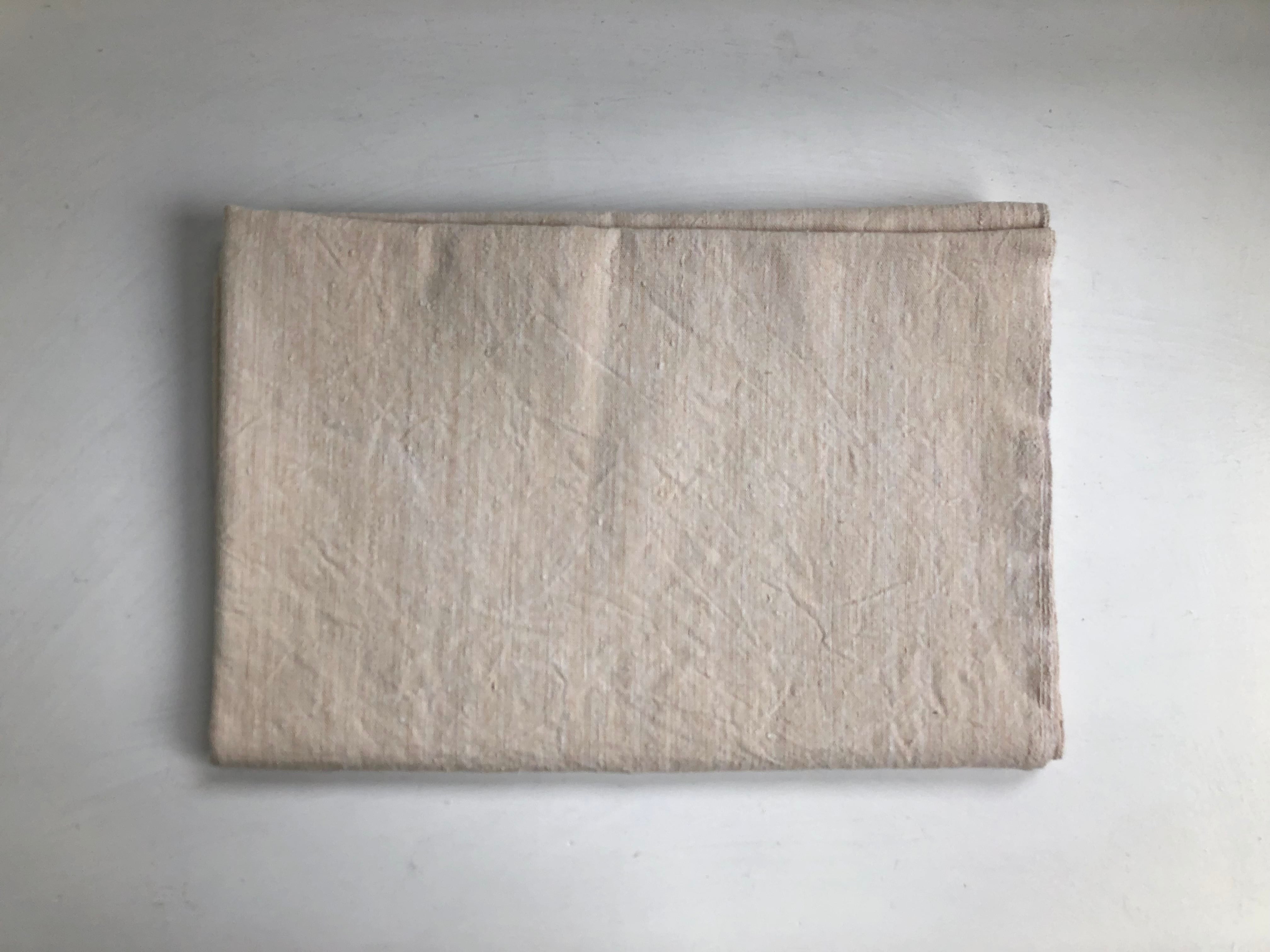 目の詰まった厚手のリネンの大判布。ざっくりとした美しい質感です。中央に接ぎがございます。洗濯のために端を縫い合わせております。