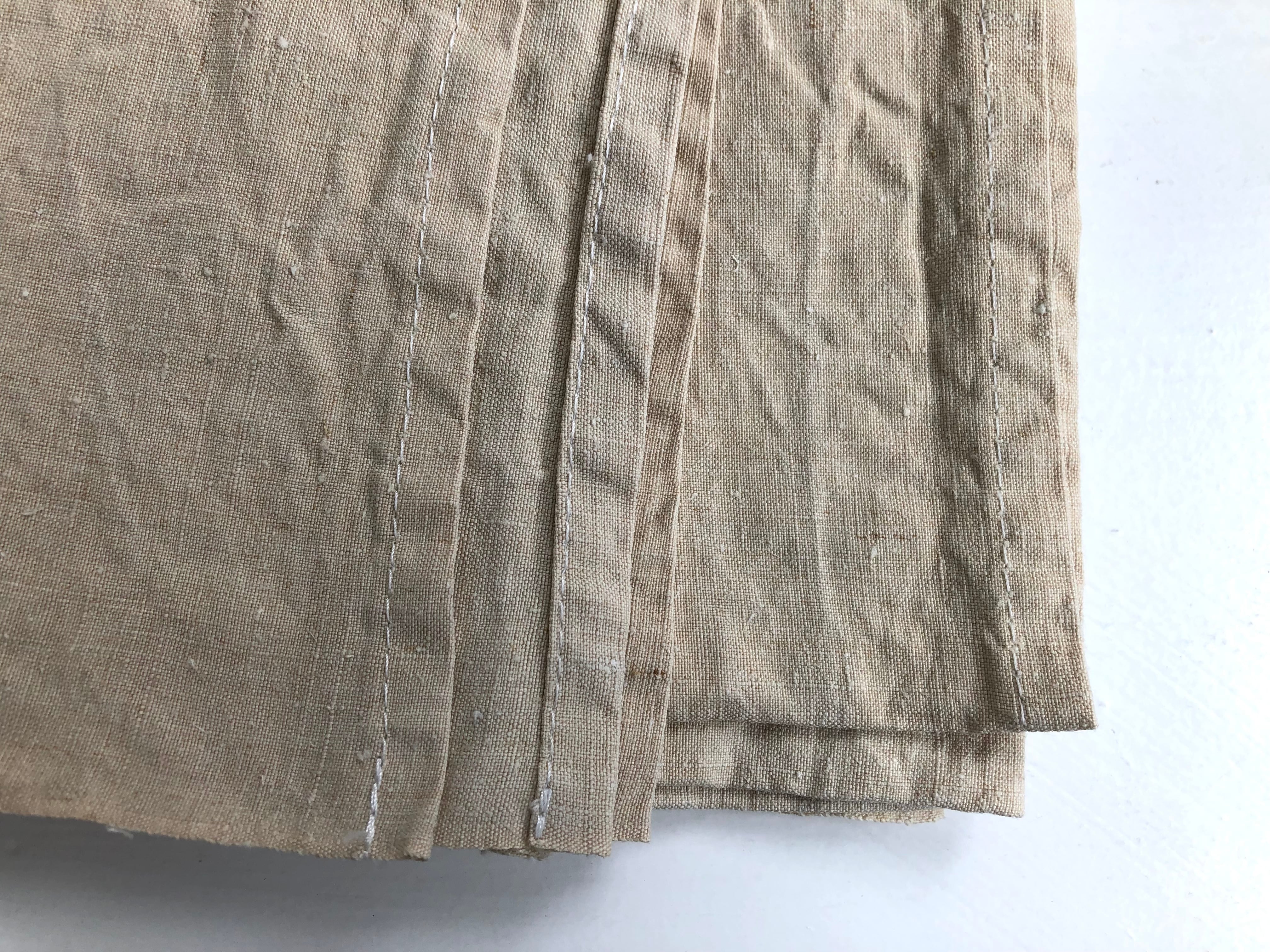 強い洗剤と酸素系漂白剤で2度洗っております。最後にクエン酸を適量入れて仕上げ洗いをしております。小さなネップや部分的に織りの多少の不正確さはございますが、汚れ、ダメージはございません。