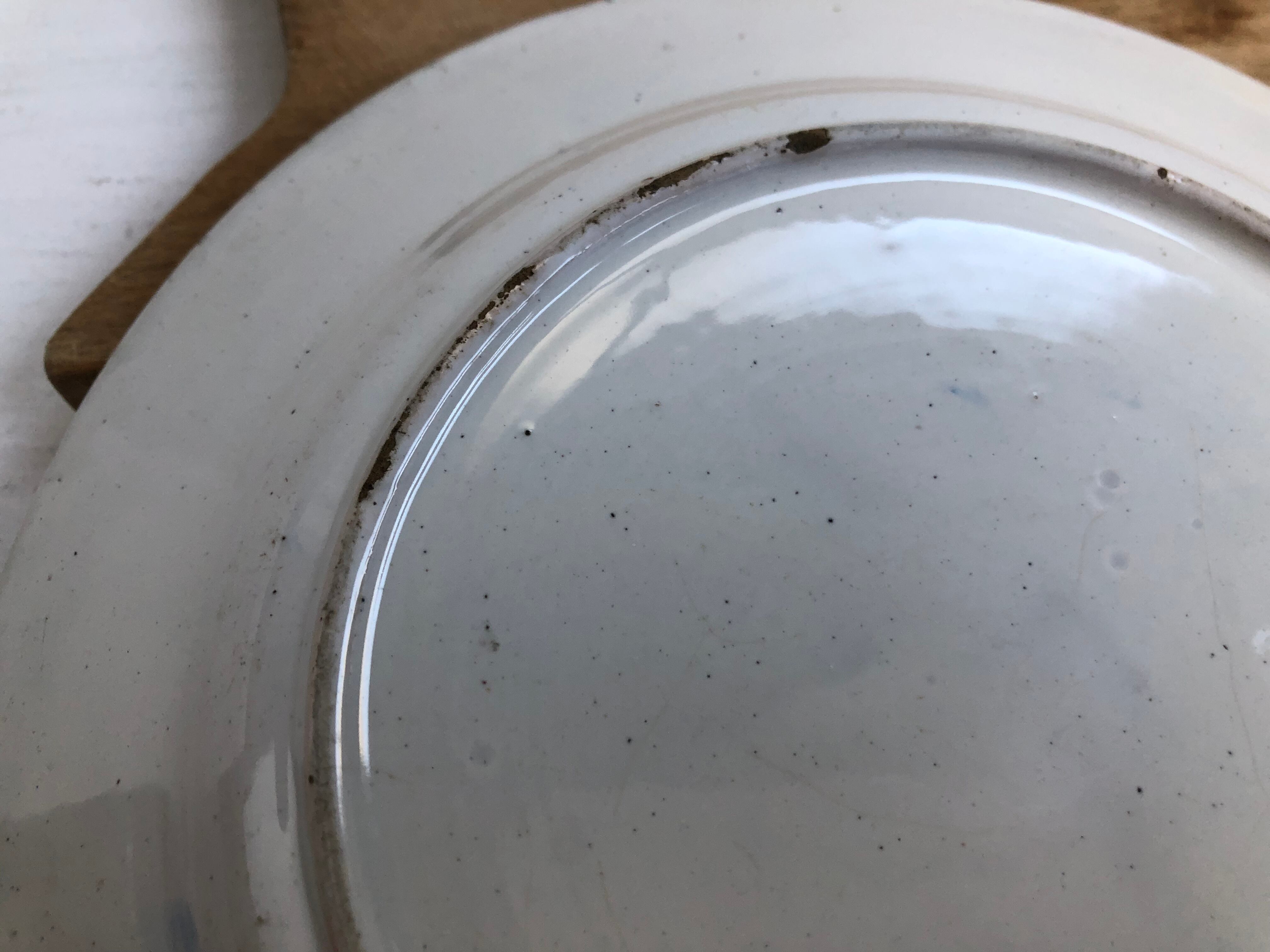 ⚪︎端の欠け、釉薬の剥がれ。大きなダメージはなく良い状態です。