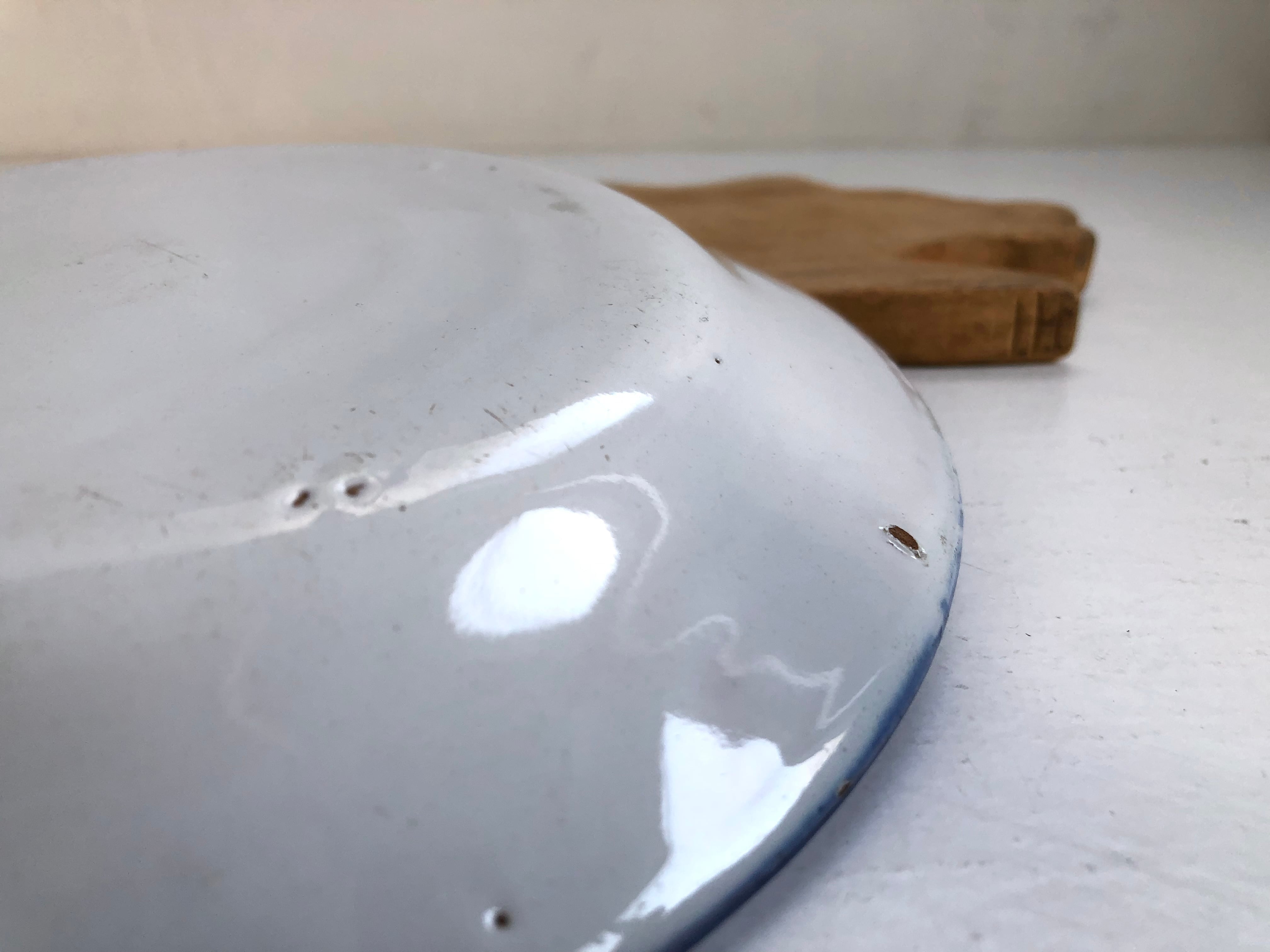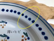 ⚪︎薄いヒビ一点。端の欠け、釉薬の剥がれ。大きなダメージはなく良い状態です。