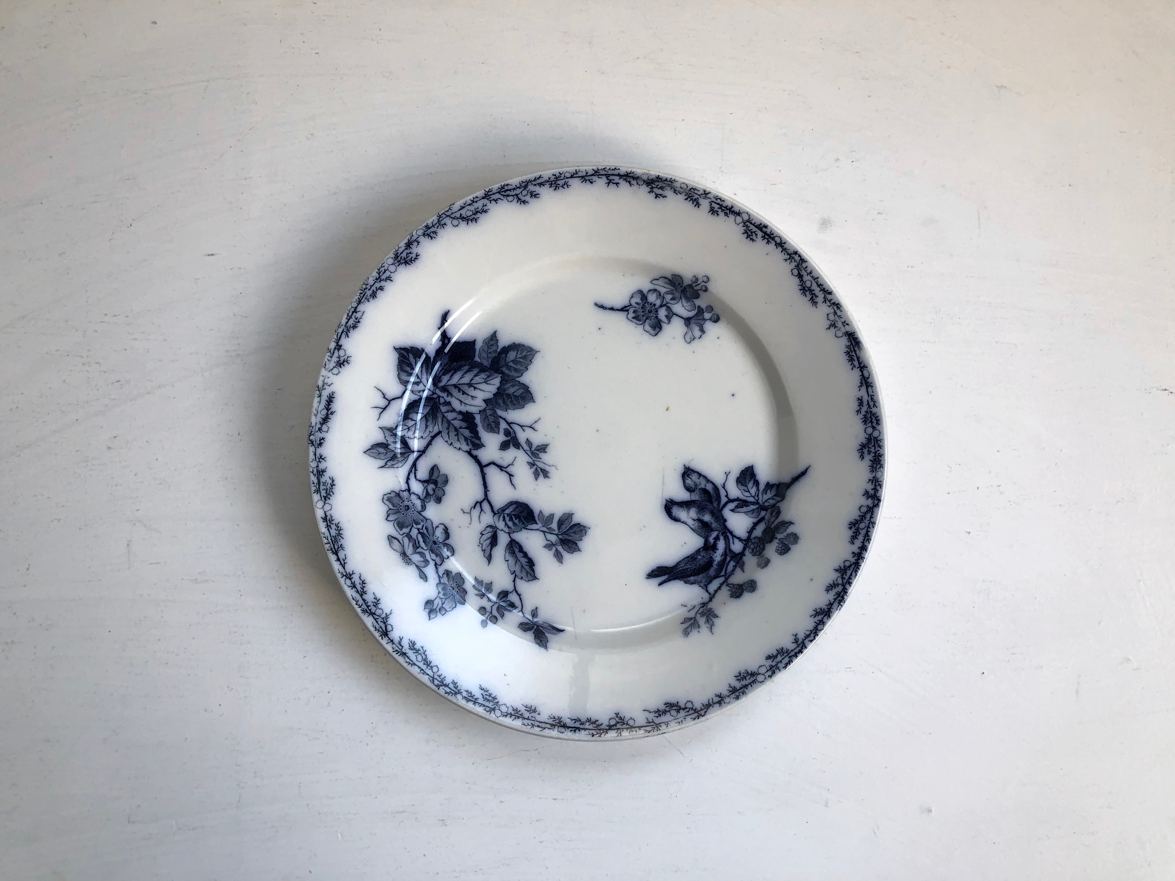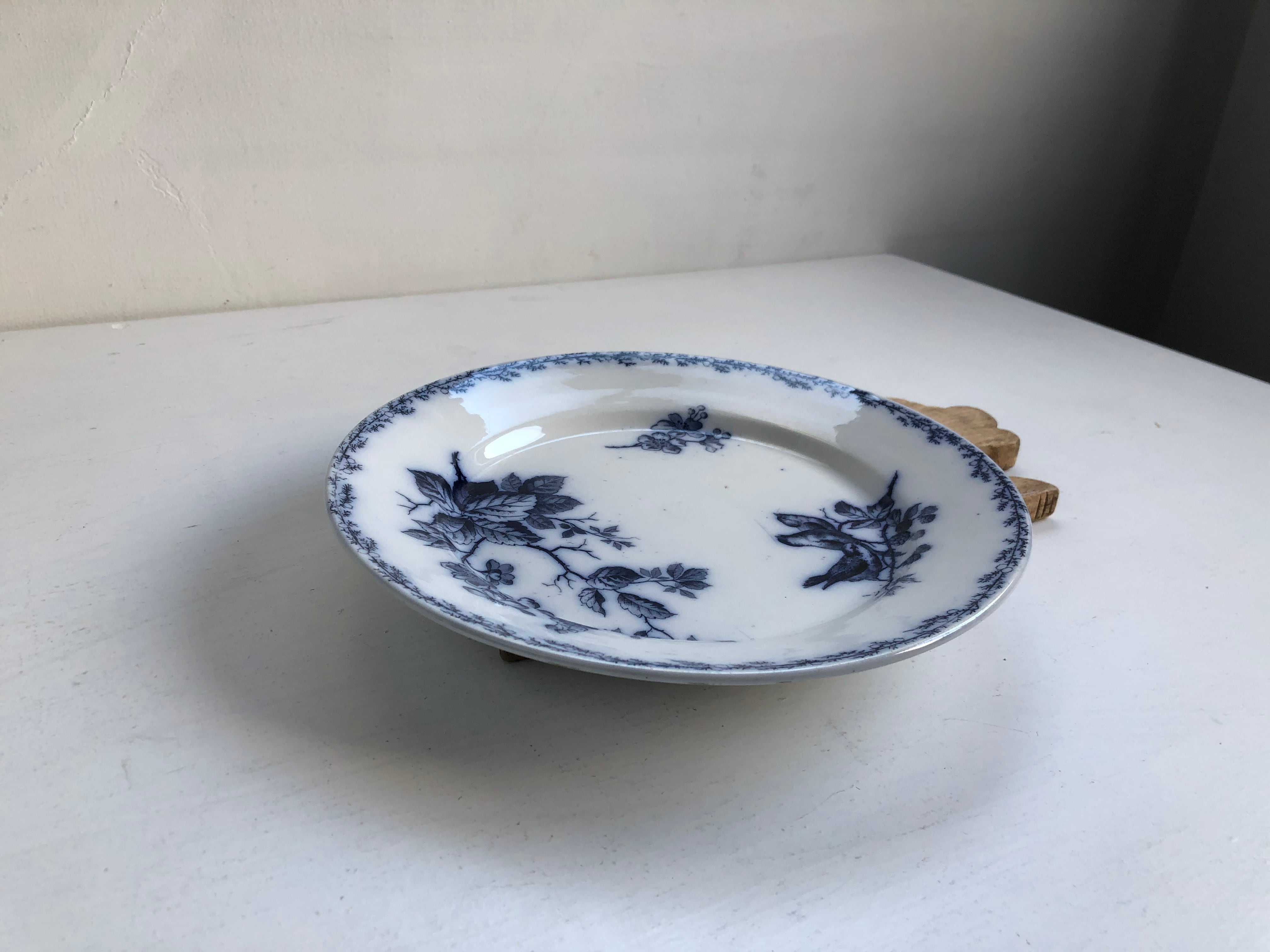 X197/クレイユエモントロー 花と鳥のプレート △