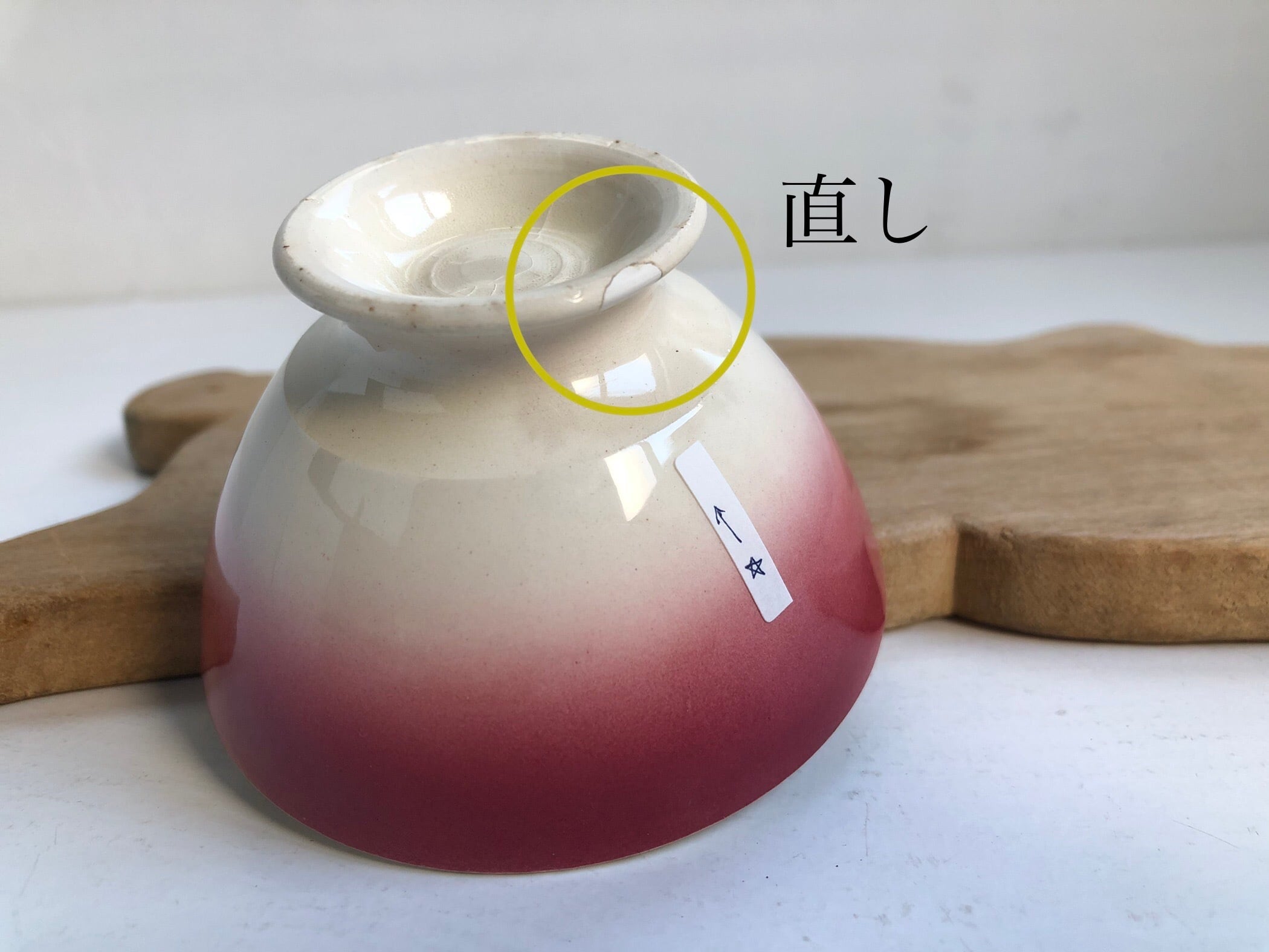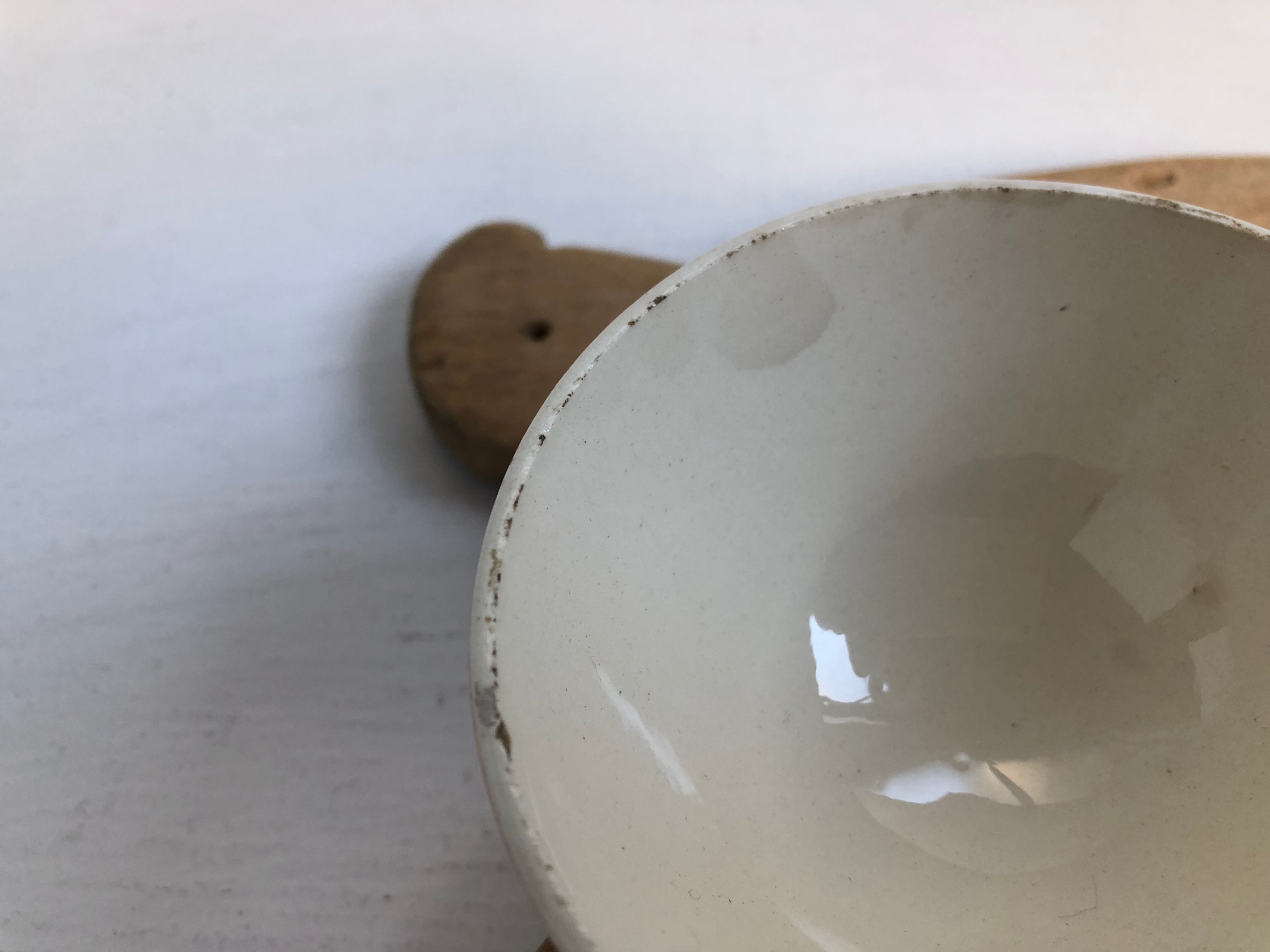 ○縁のスレ、高台に小さな直し、ペイントミス一点。大きなダメージはなく良好な状態です。
